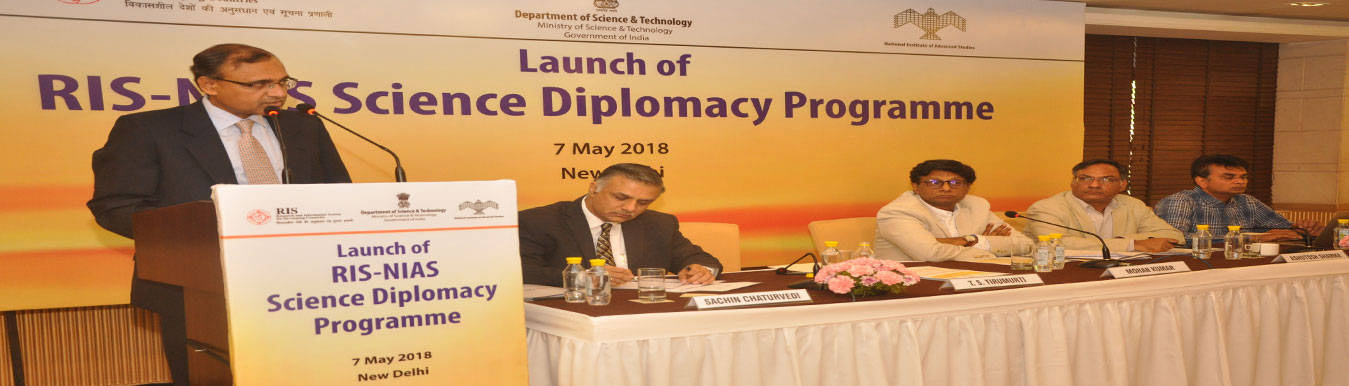 As part of its ongoing research studies on Science &Technology and Innovation, RIS together with the National Institute of Advanced Studies (NIAS), Bangalore has launched a major project for Science Diplomacy this year, which is funded by the Department of Science and Technology. The programme was launched on 7 May 2018 at New Delhi.
